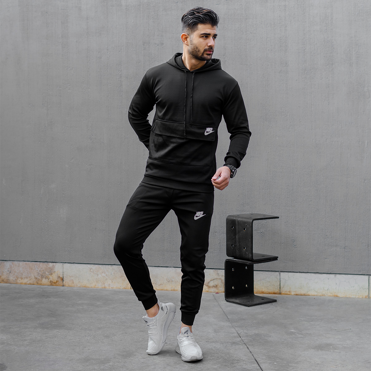 ست هودی شلوار جیب پاکتی نایک مشکی مردانه مدلNIVANO