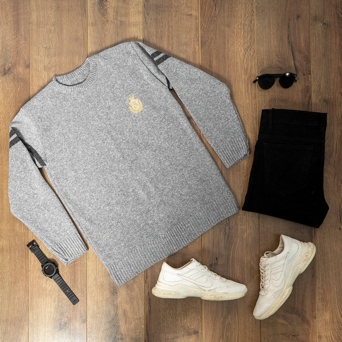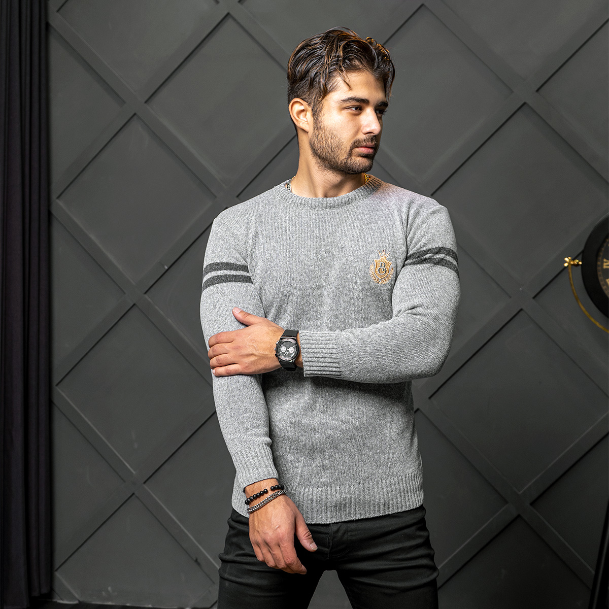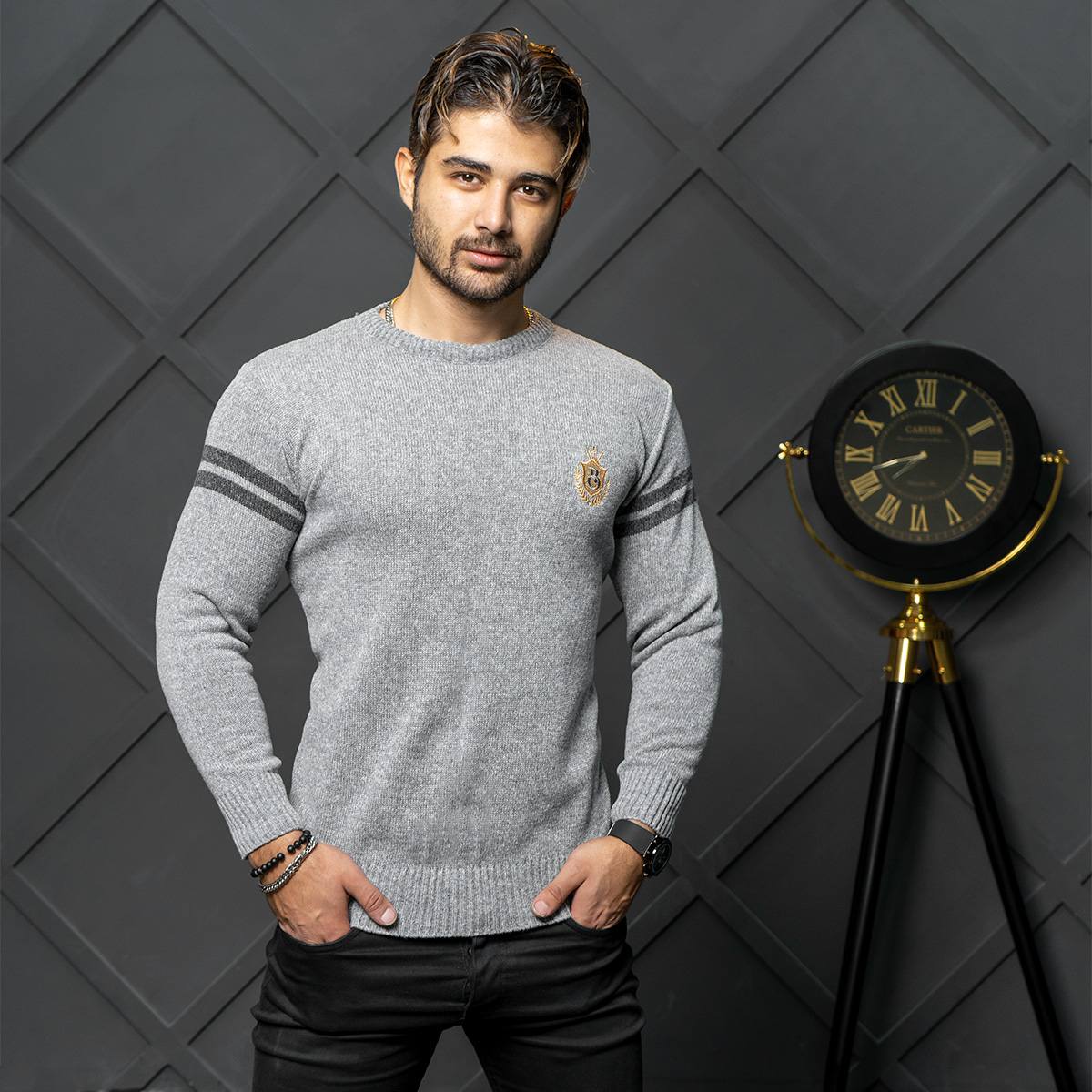 پلیور مردانه طوسی روشن مدل Akar