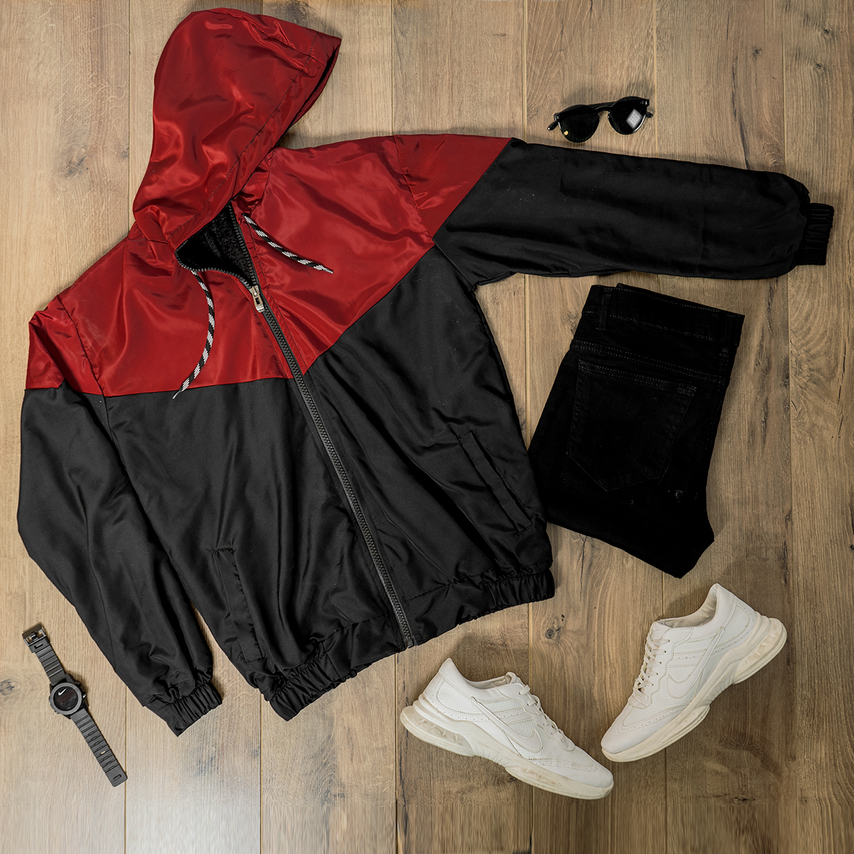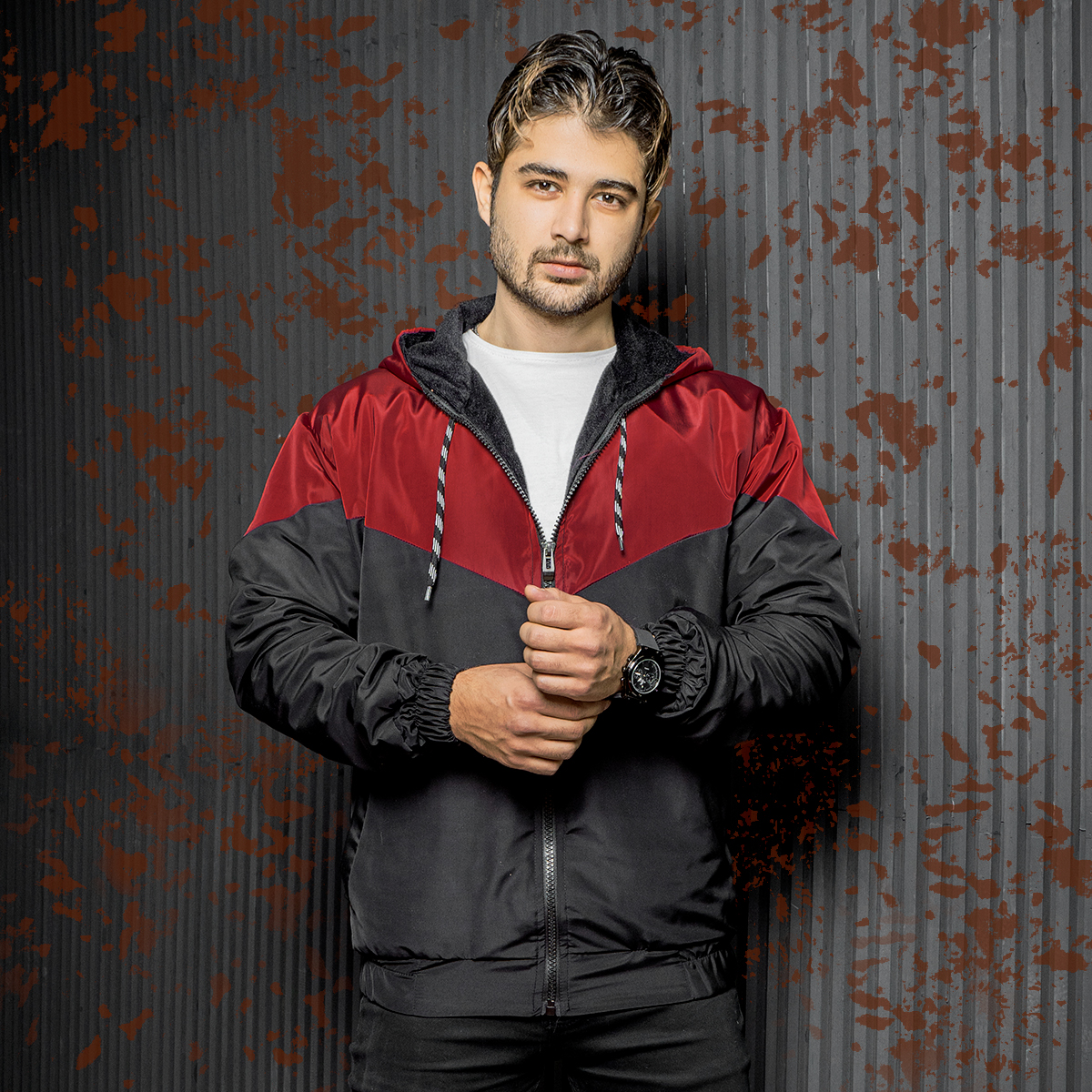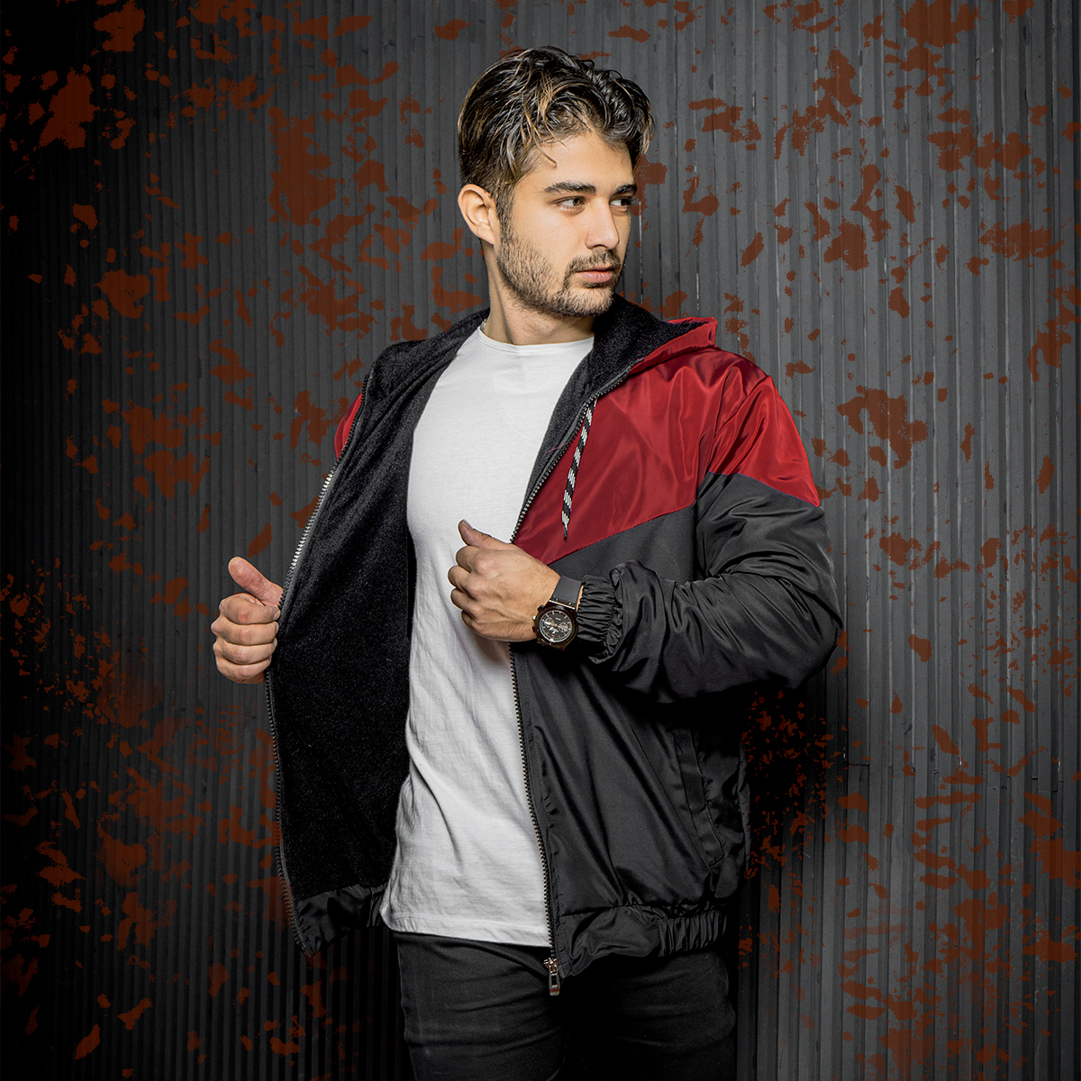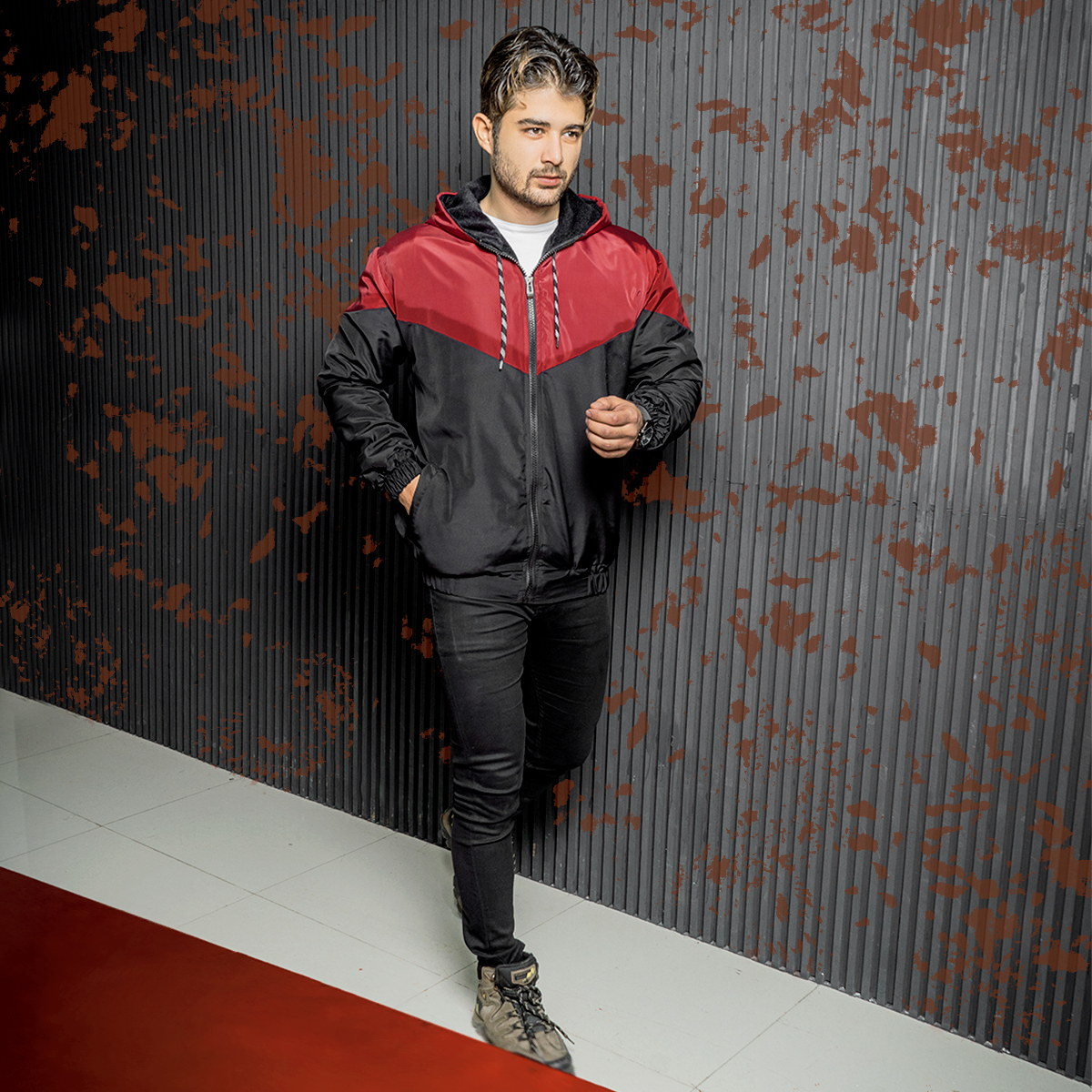 کاپشن مردانه مشکی زرشکی مدل K64