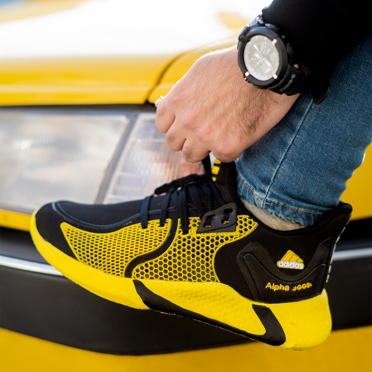 کفش ورزشی مردانه مشکی زرد مدل Arang