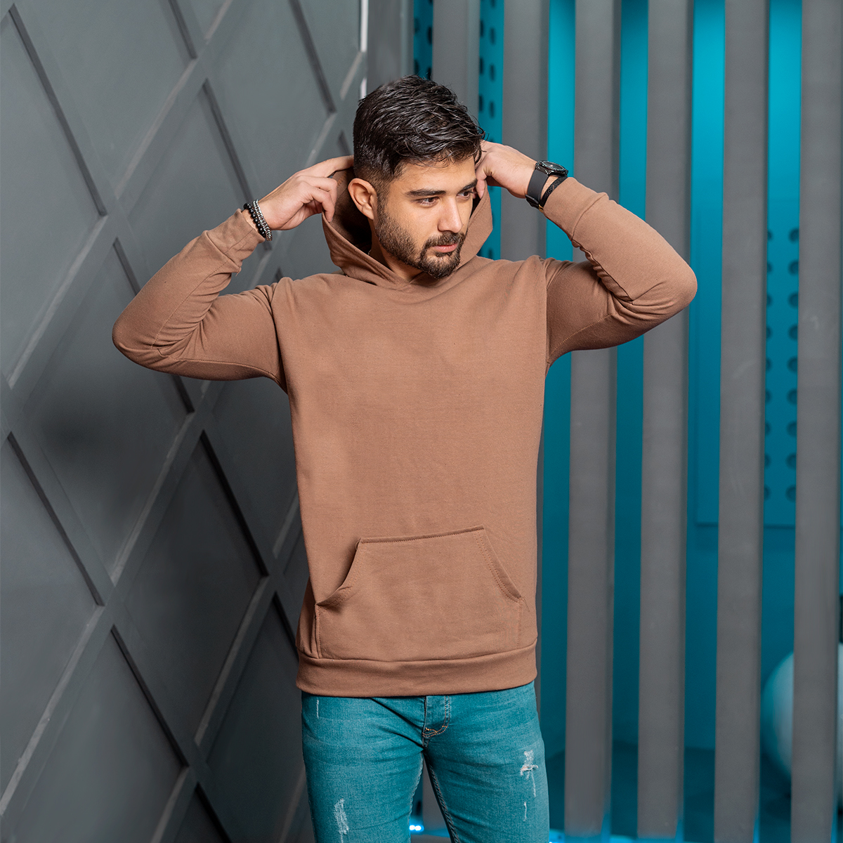هودی مردانه قهوه ای مدل Ramtin