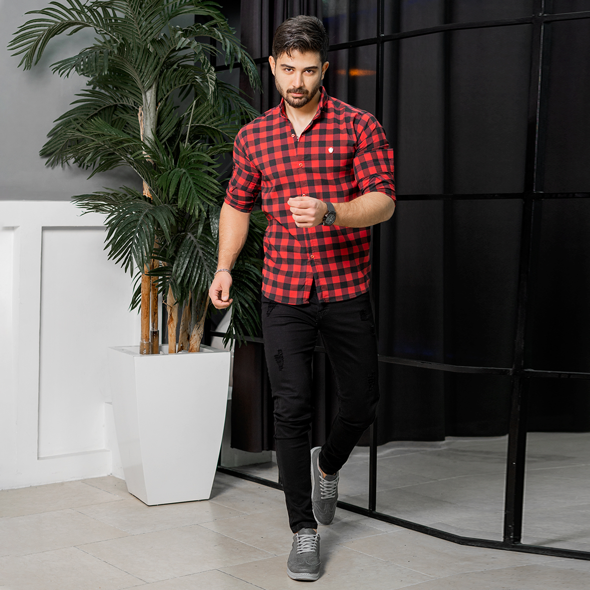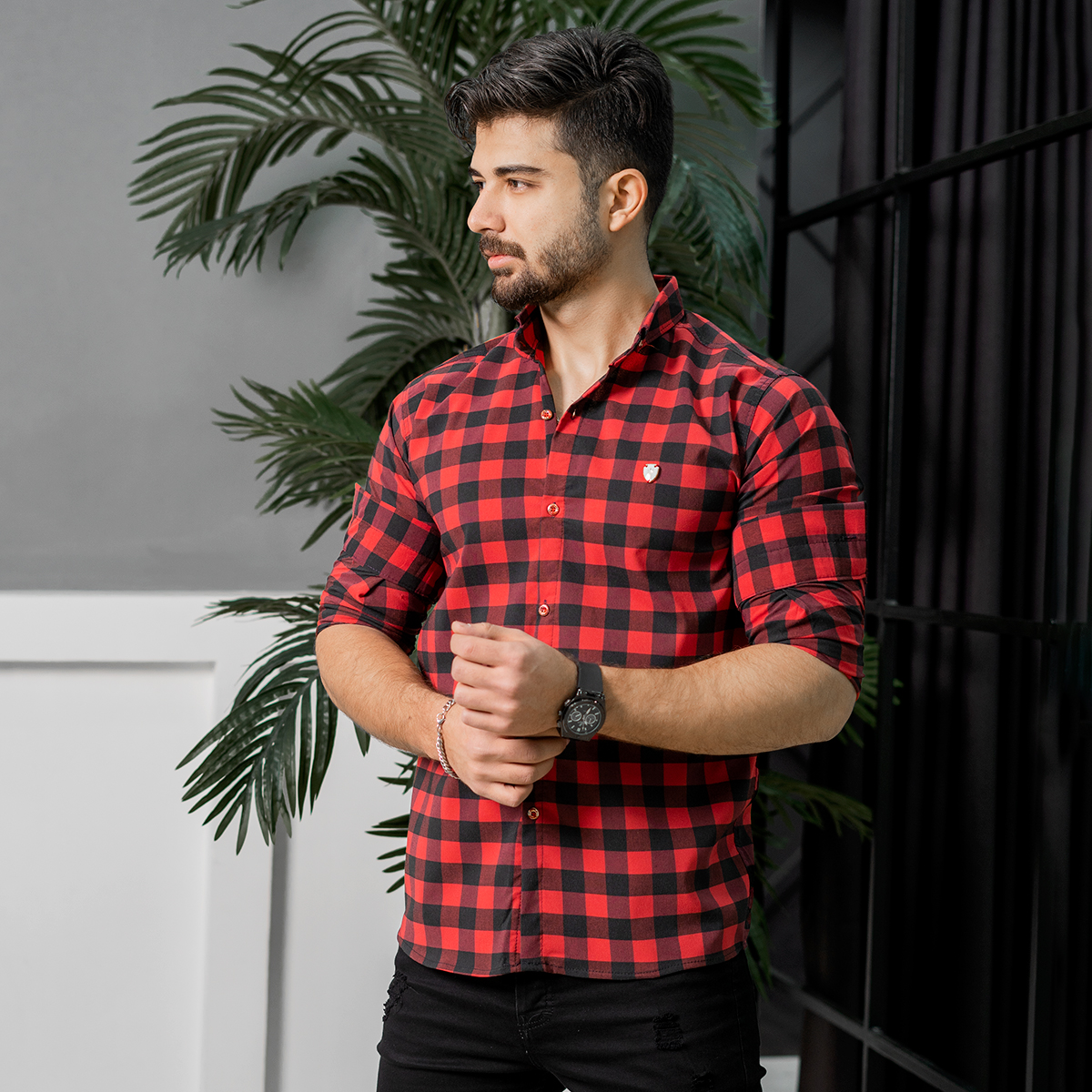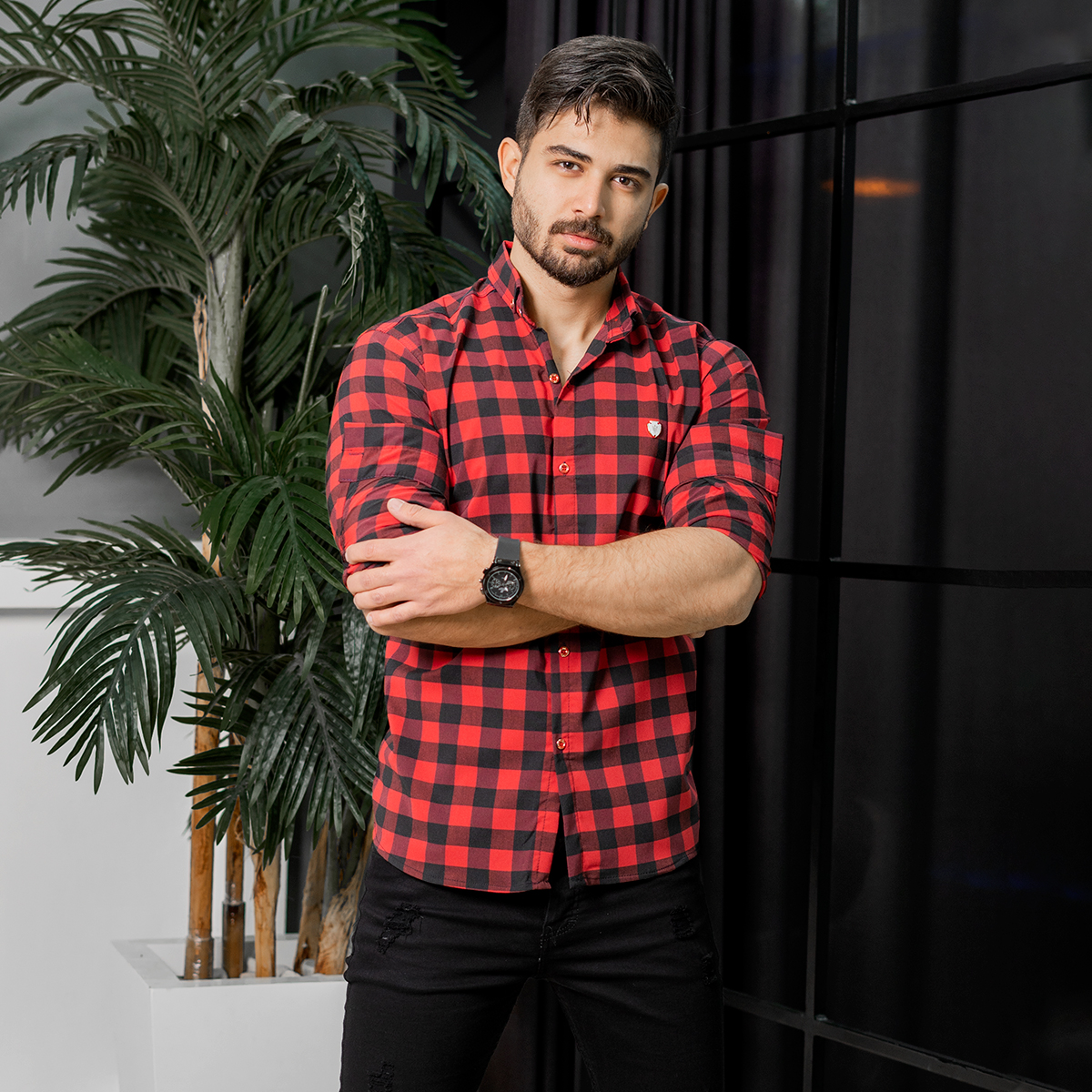 پیراهن چهارخانه قرمزمدل Joyan