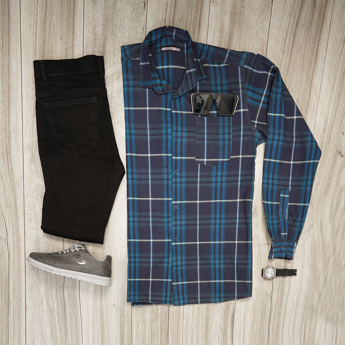 رنگ بندی : چهارخونه سرمه ای آبی