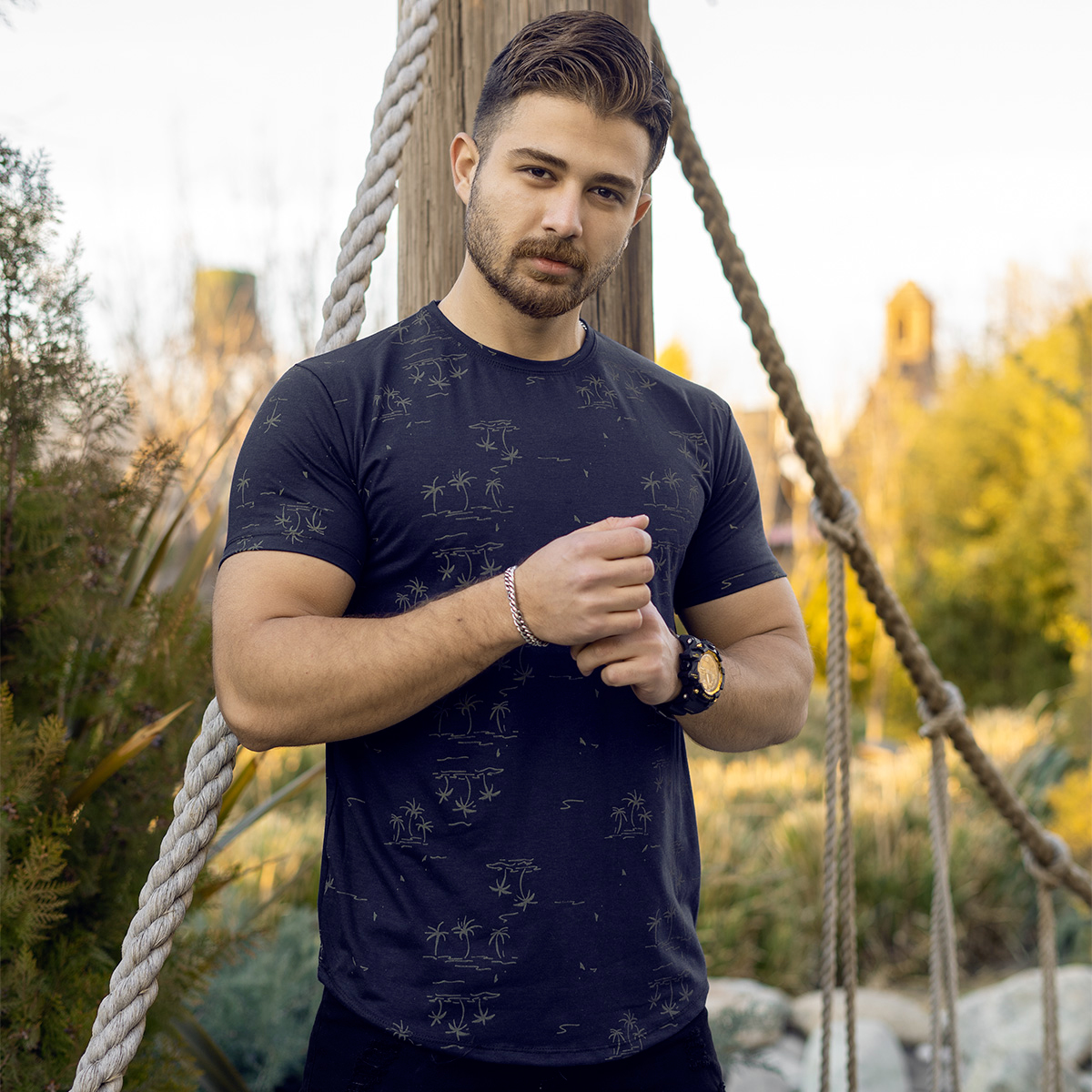 تیشرت هاوایی سرمه ای مردانه مدل E99