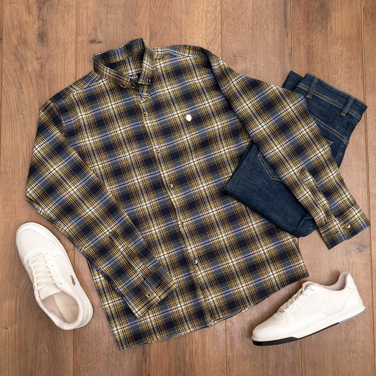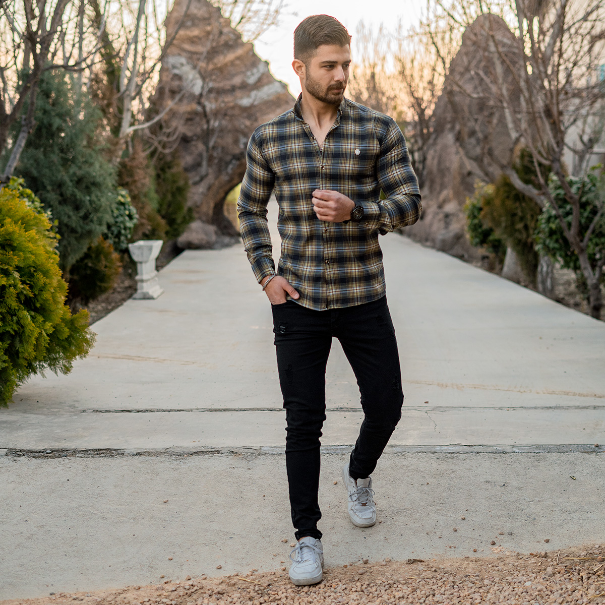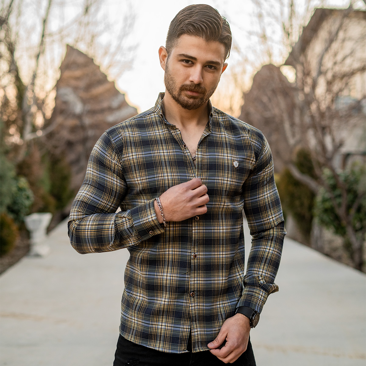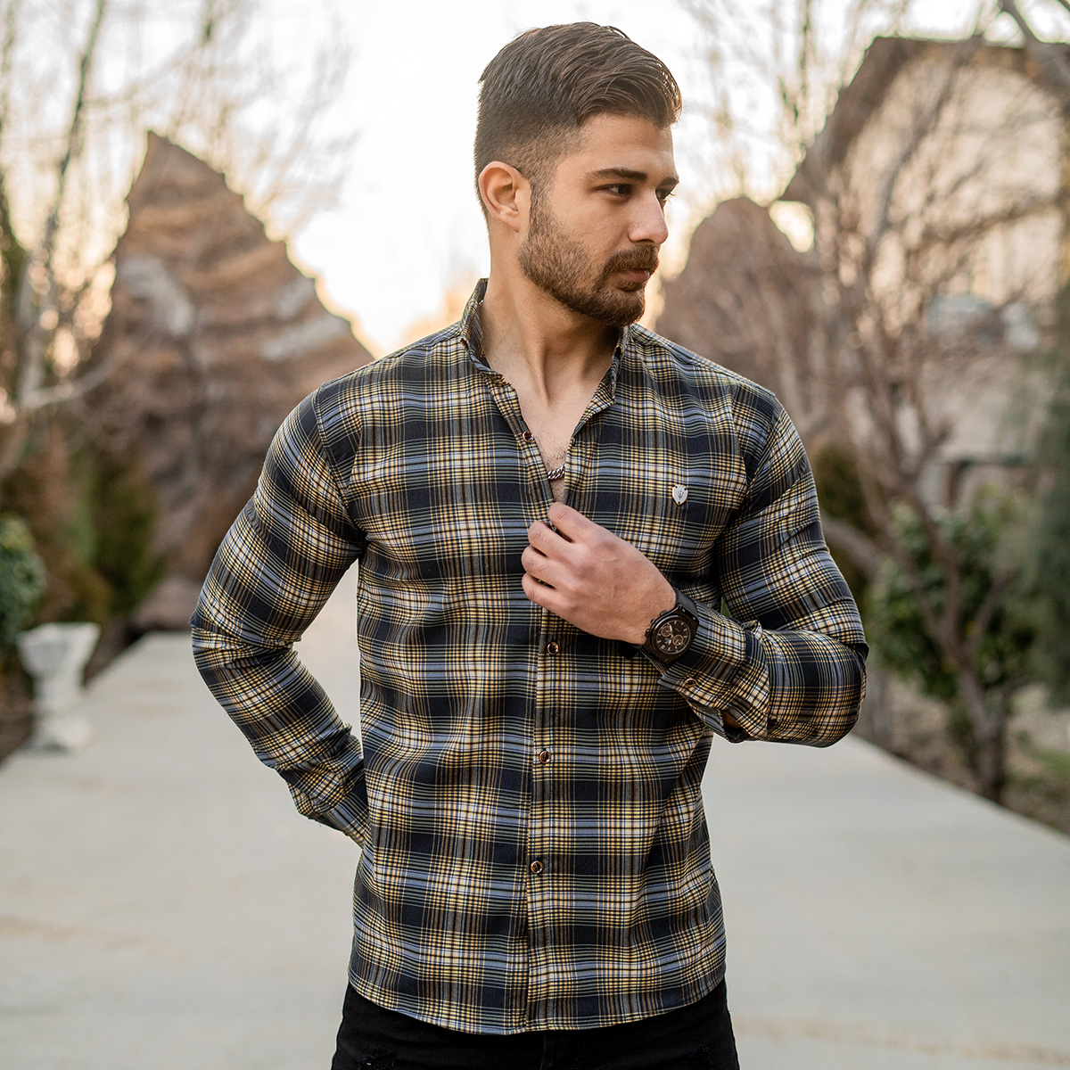 پیراهن چهارخونه آبی زرد مردانه مدل Z22
