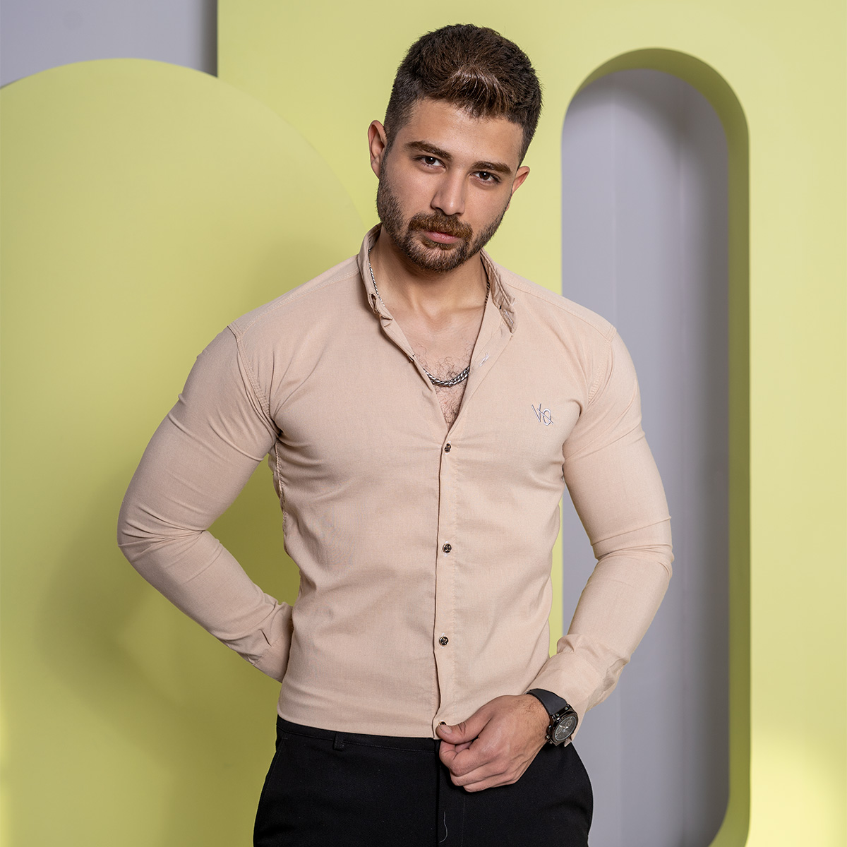 پیراهن مردانه کرم مدل VQ