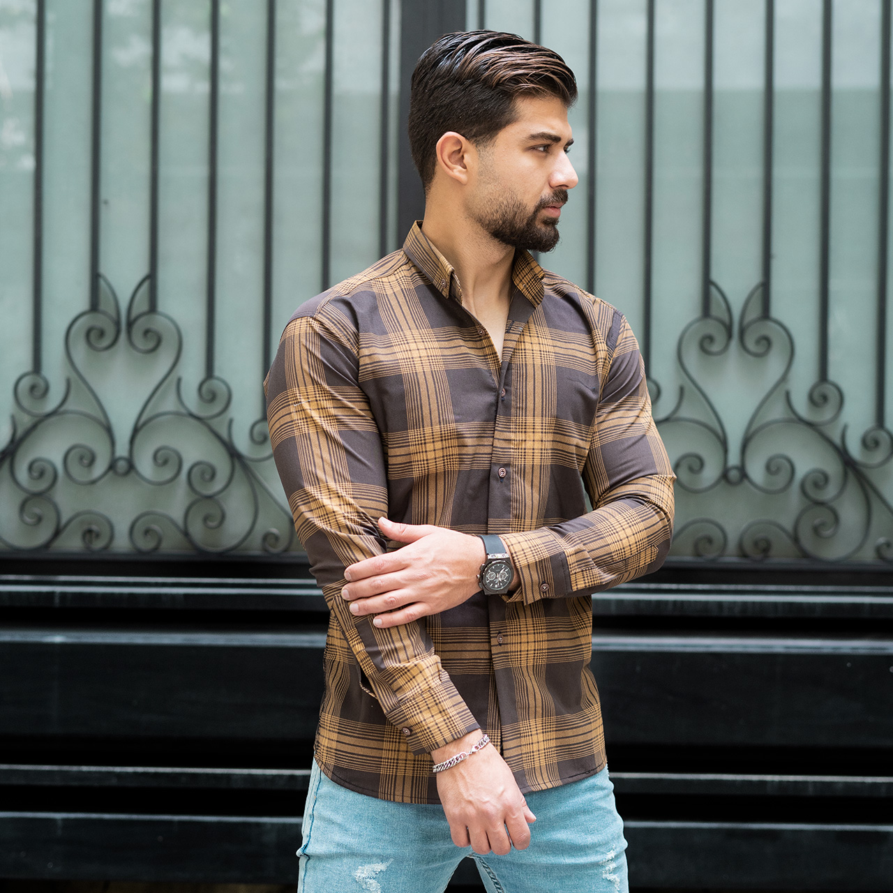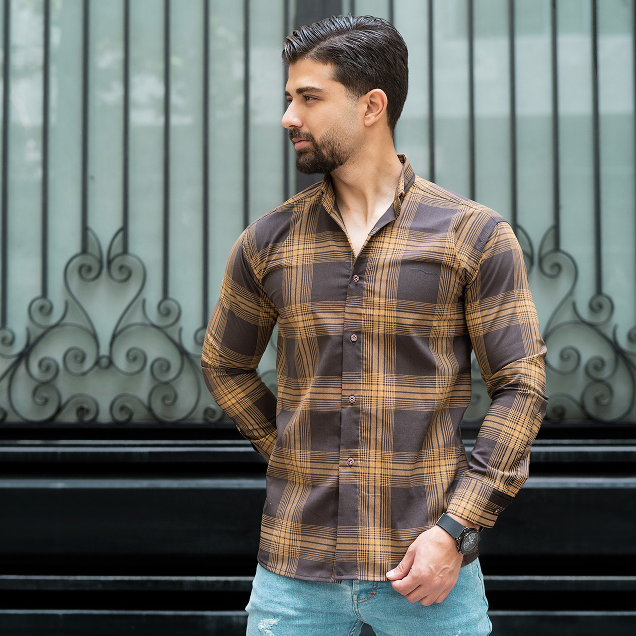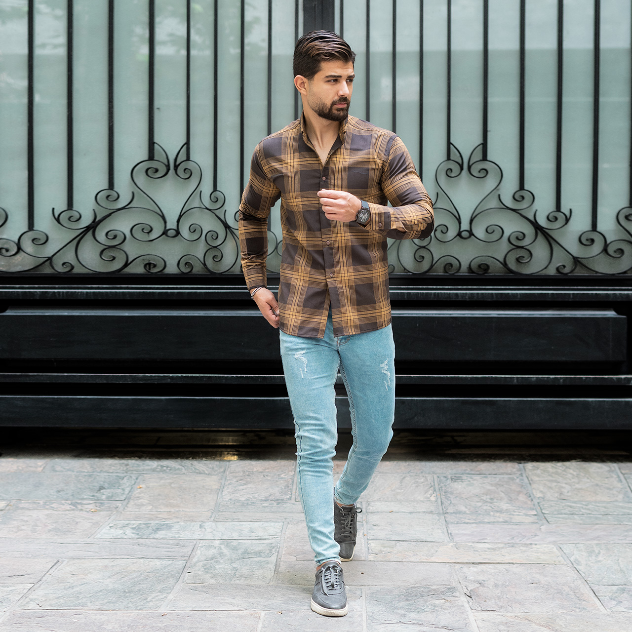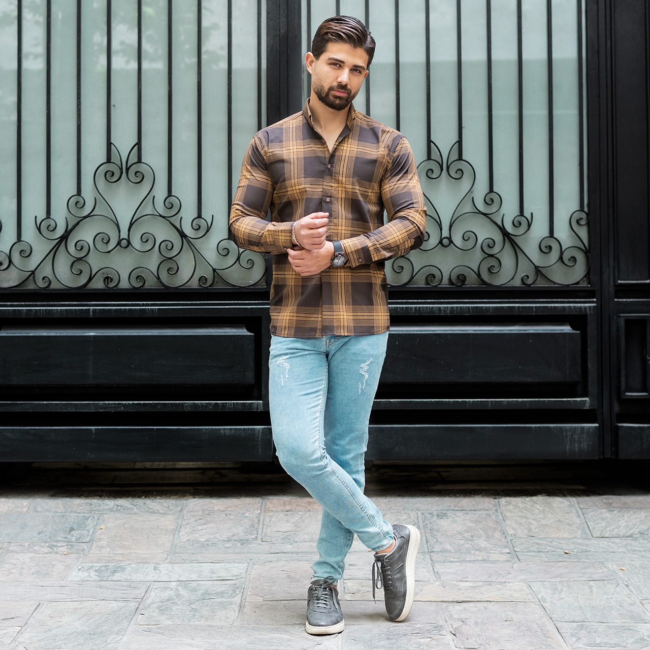 پیراهن مردانه(T)چهار خونه قهوه ای روشن مدلzava