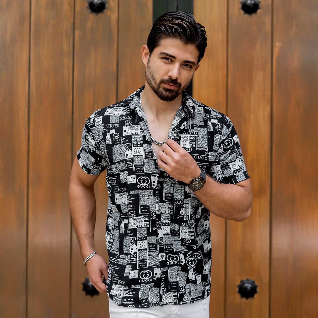 پیراهن هاوایی طرح نوشته مردانه مدل Gucci