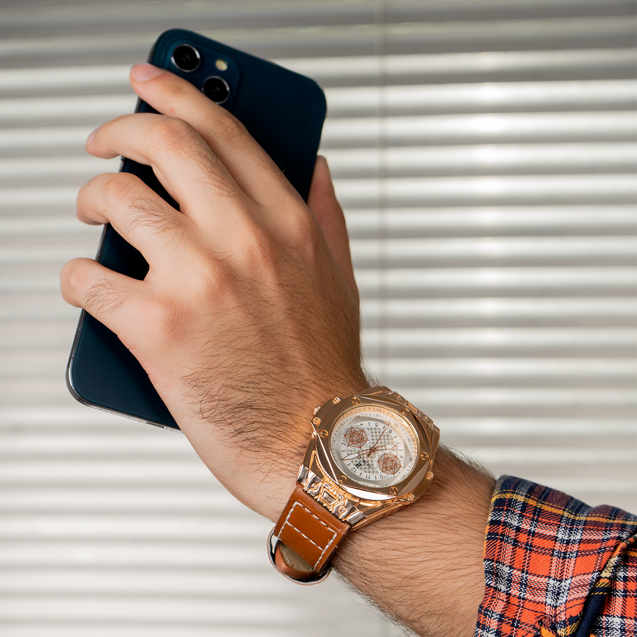 ساعت مچی Hublot قهوه ای قاب طلایی مدل G705