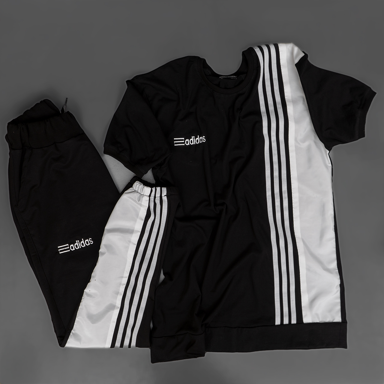 ست تیشرت شلوارآدیداس دورنگ سفید مشکی مردانه مدل b.s