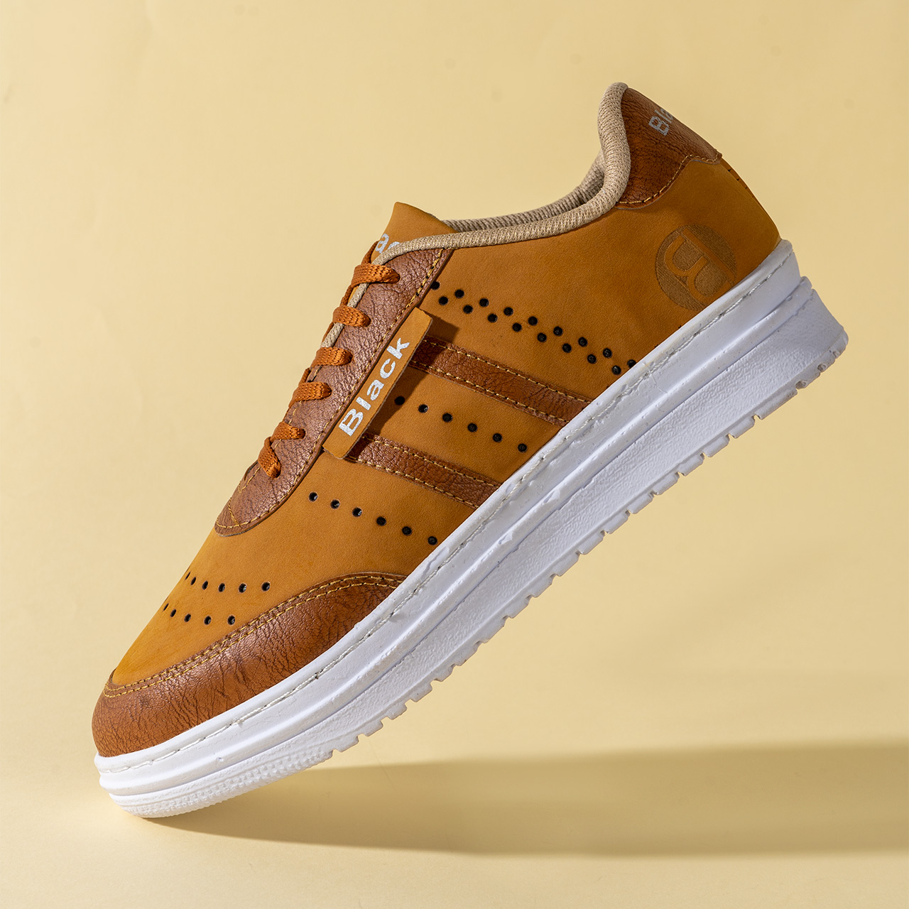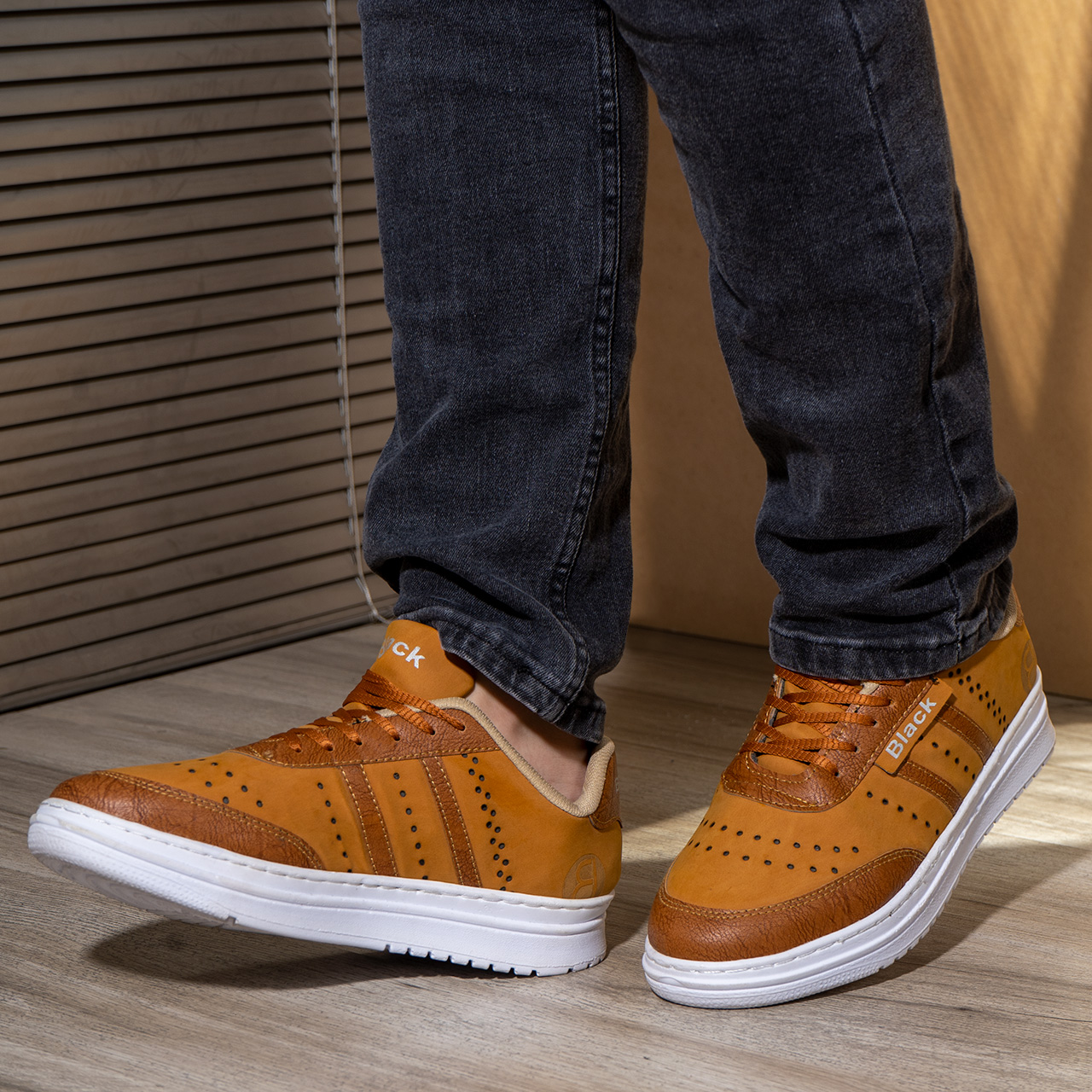 کفش تخت مردانه عسلی زیره سفید مدل Black