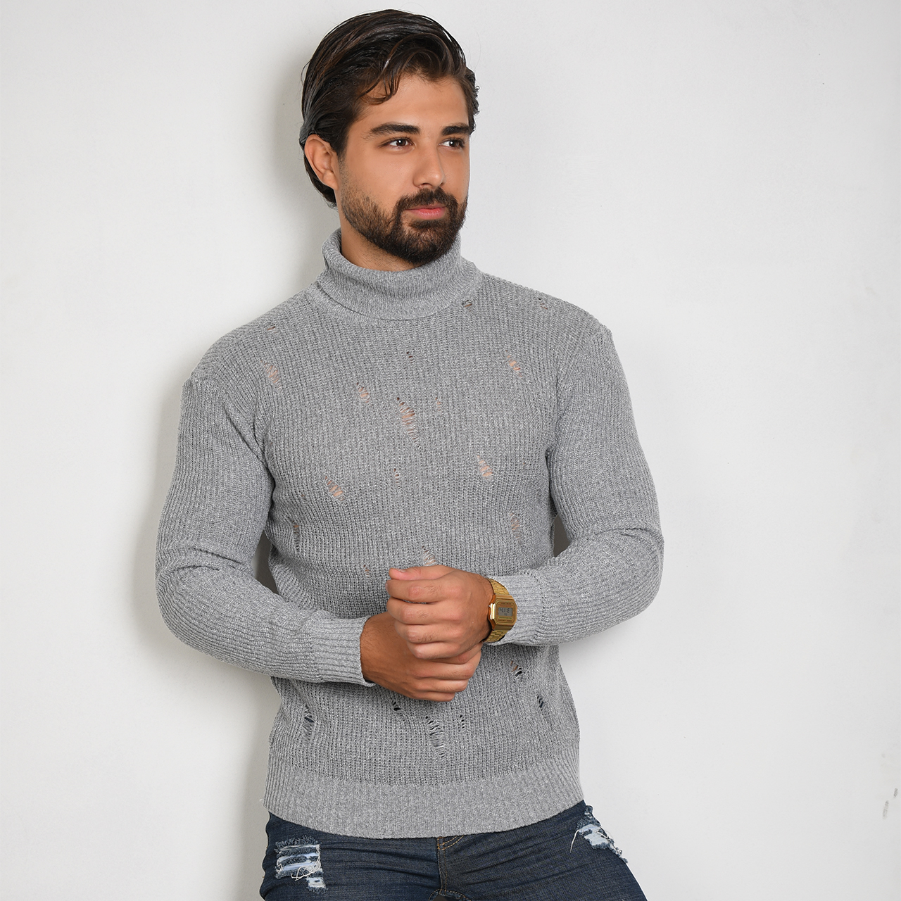 پلیور یقه اسکی طوسی زاپ دار مردانه مدل U10
