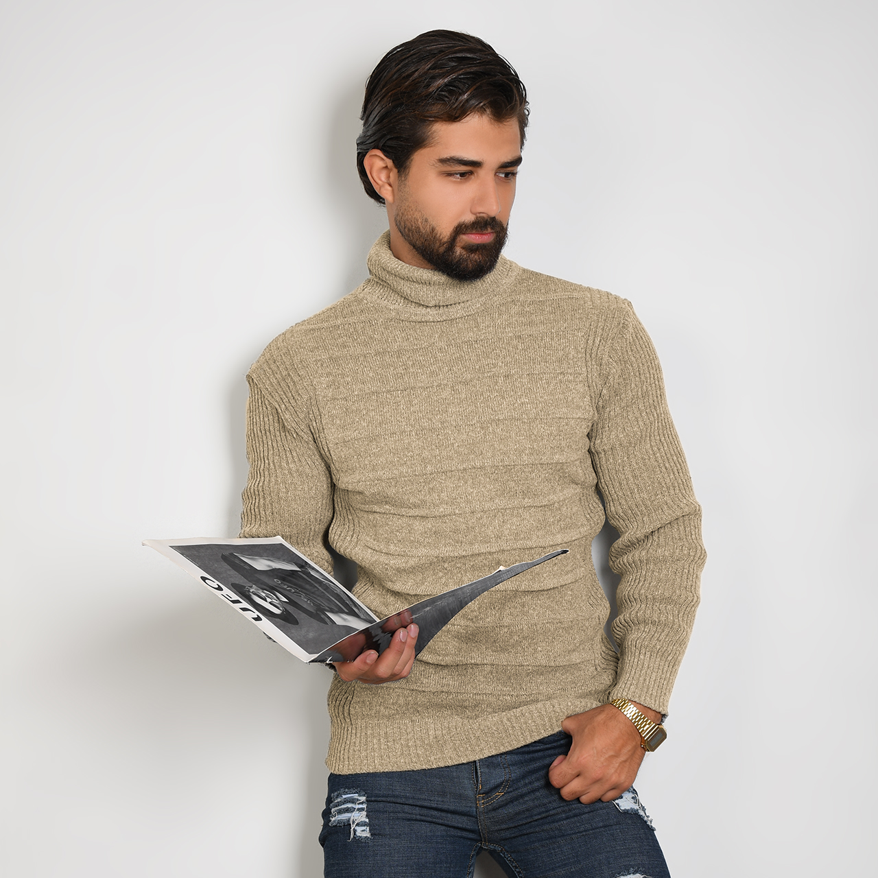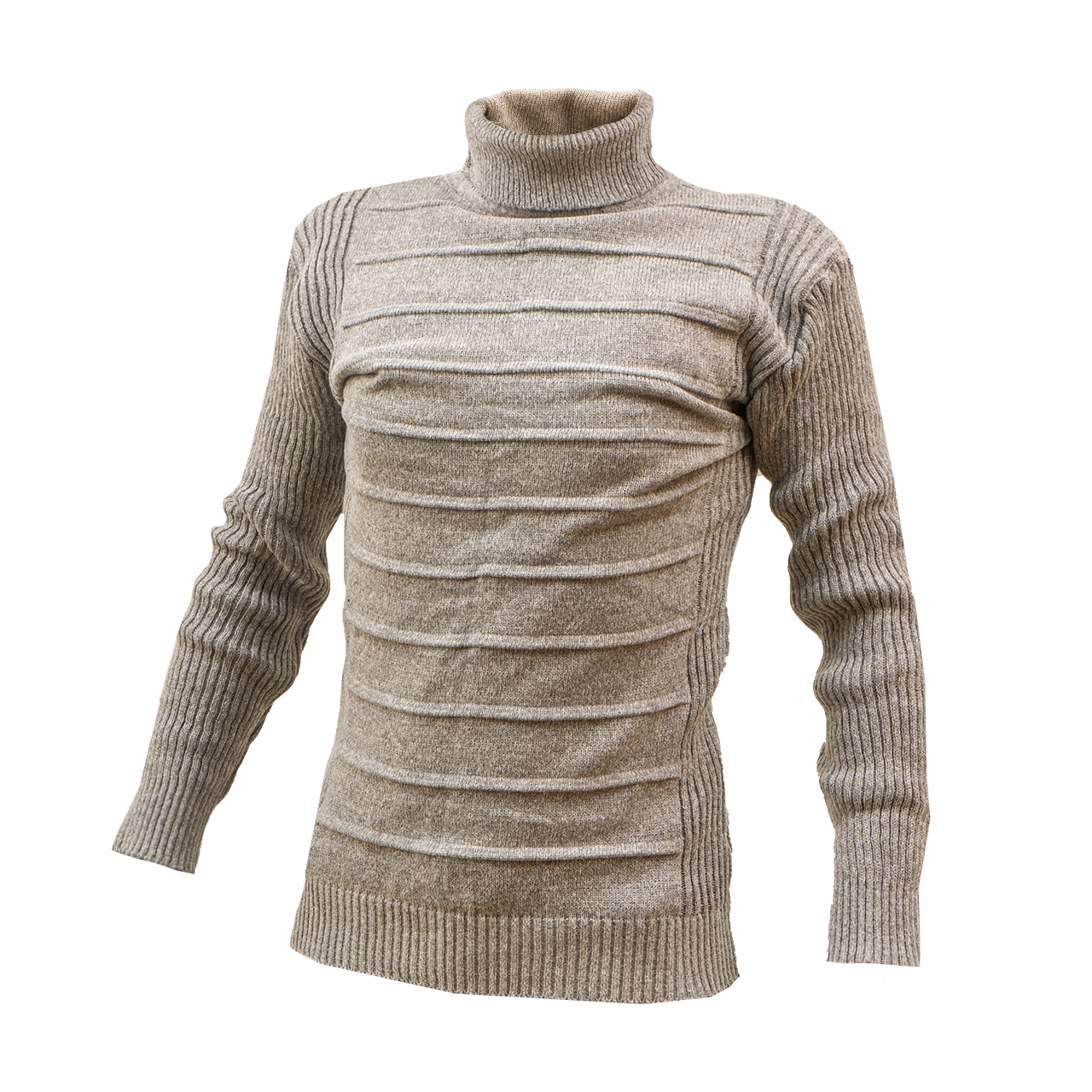پلیور یقه اسکی کرم طرح کرکره ای مردانه مدلR10