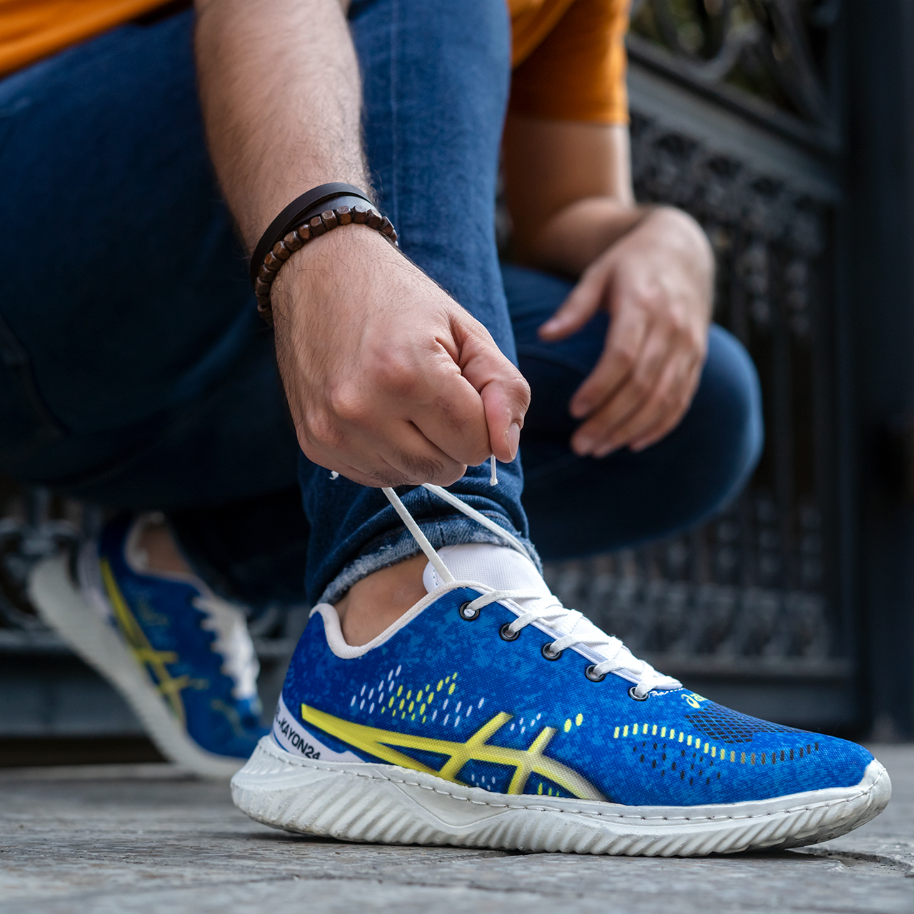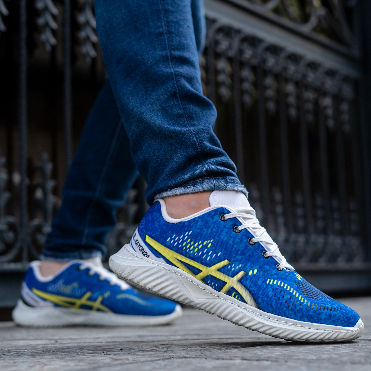کفش مردانه اسیکس آبی زرد (T) مدل dahak