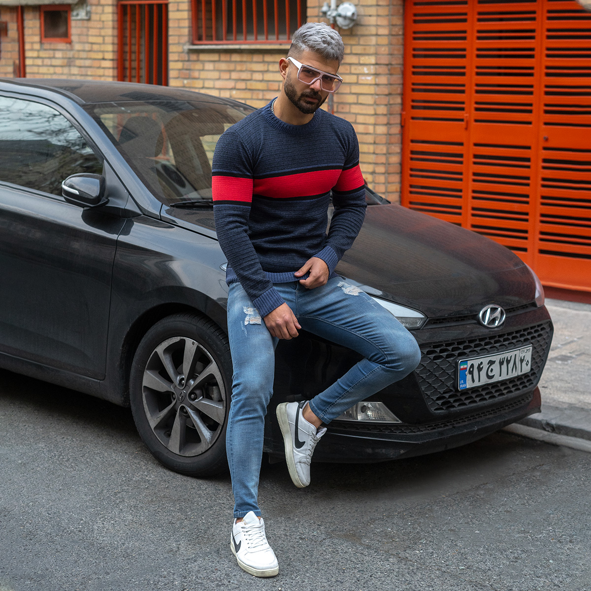 پلیور مردانه قرمز- سرمه ای مدل Madis
