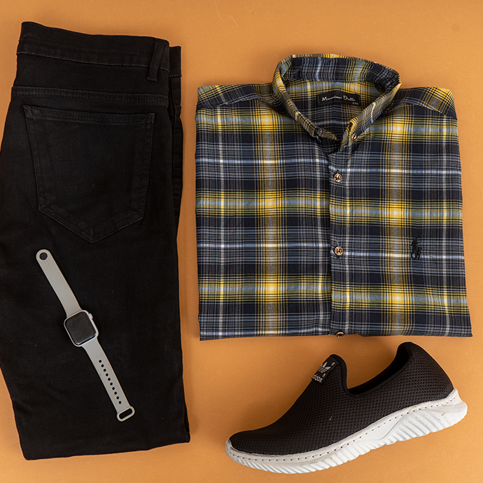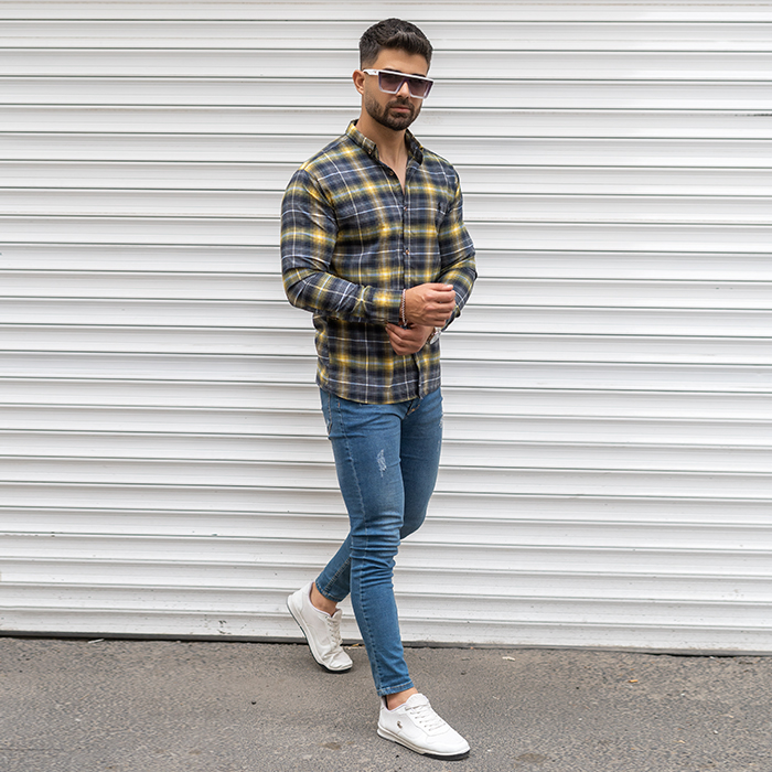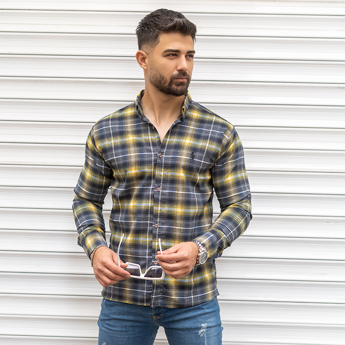 پیراهن مردانه زرد سرمه ای مدل Farzad