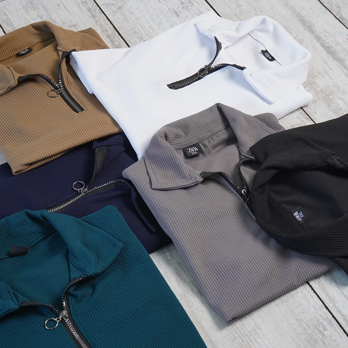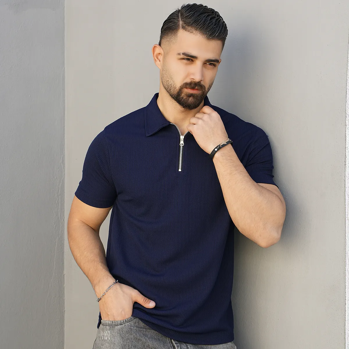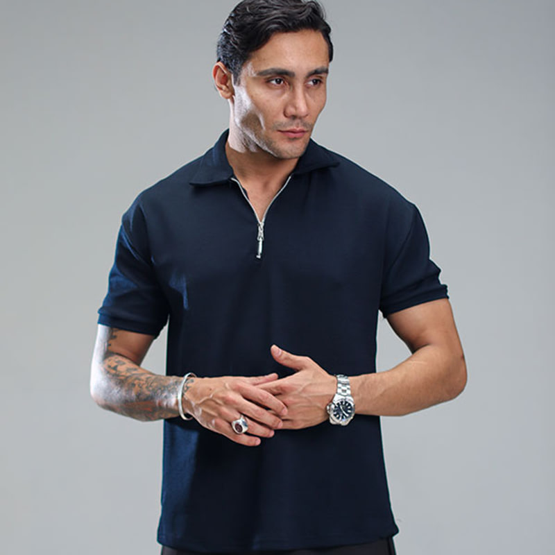 تیشرت مردانه یقه زیپ دار سرمه ای مدل Arban