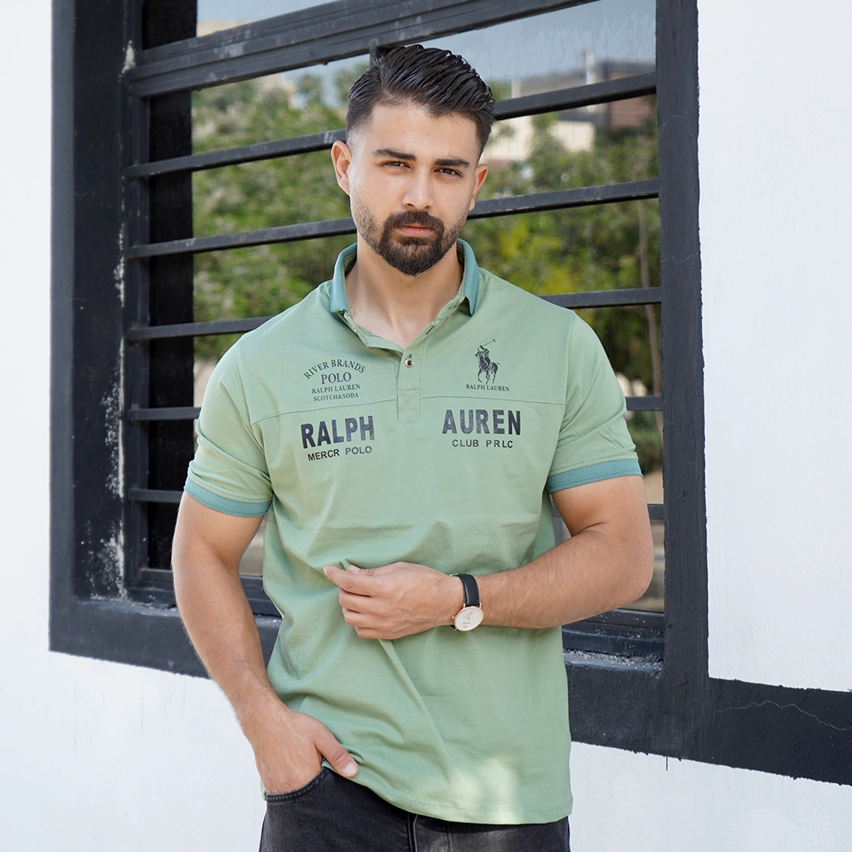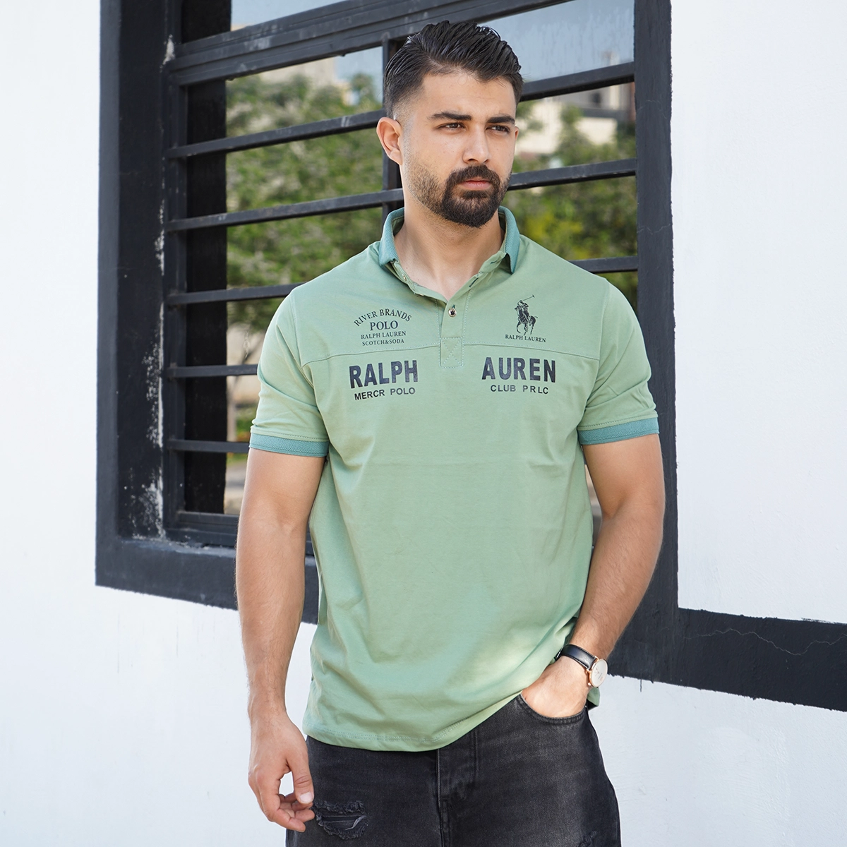 تیشرت یقه دار سبز مردانه مدل Ralph