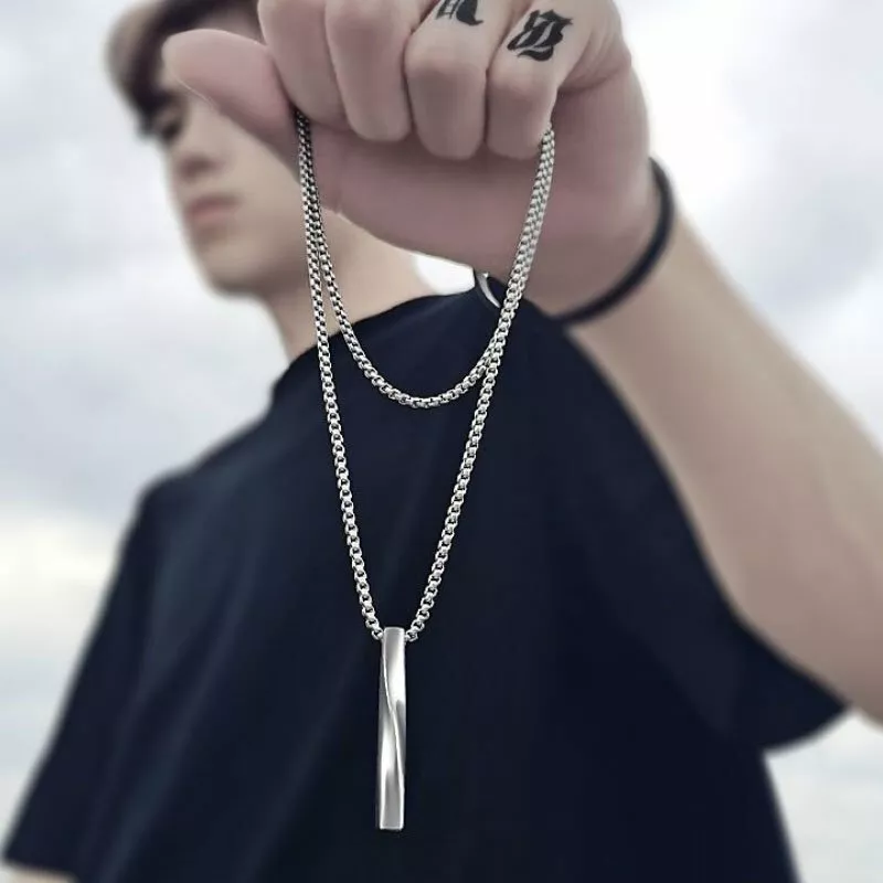 گردنبند مردانه نقره ای مدل پیچ خورده