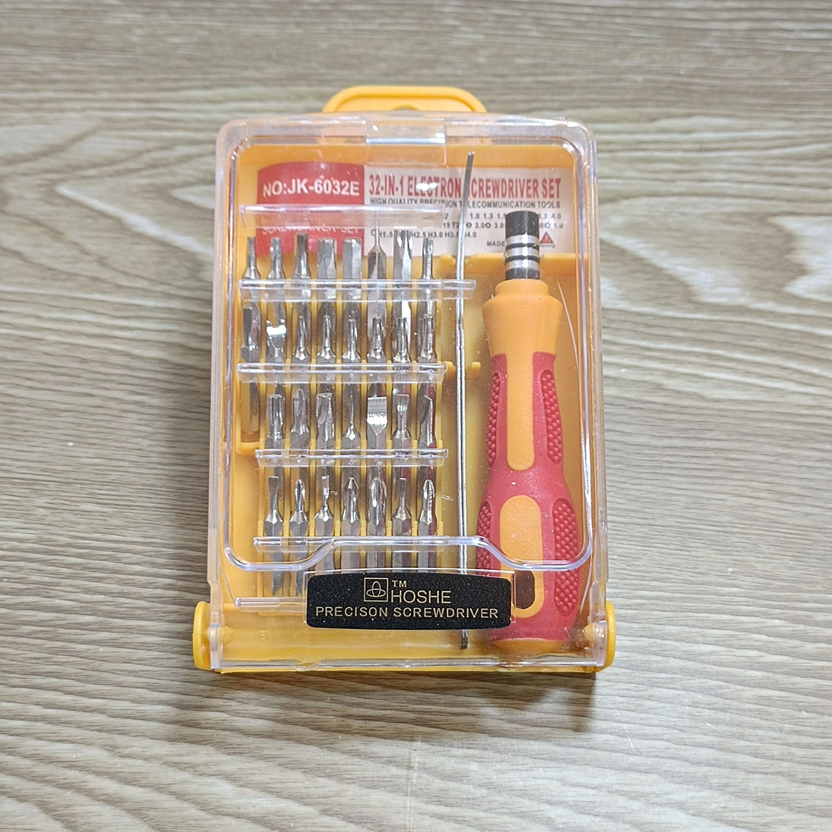 مجموعه ۳۲ تایی پیچ‌گوشتی و انواع آچار موبایلی - دارای۳ عدد سر پیچ‌گوشتی چهارسو - دارای ۷ عدد سر پیچ‌گوشتی دوسو - دارای ۸ عدد سری آلن ۶ ضلعی - دارای ۹ عدد سری ستاره‌ای - دارای یک عدد سری دندان ماری( دو سو وسط خالی) - دارای یک عدد سری مثلثی - دارای یک عدد سری سه سو - یک عدد پنس - یک عدد دسته
