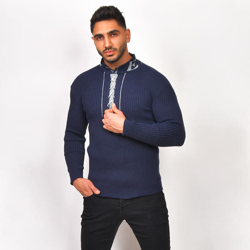 پلیوربافت سرمه ای مردانه مدل Ashot
