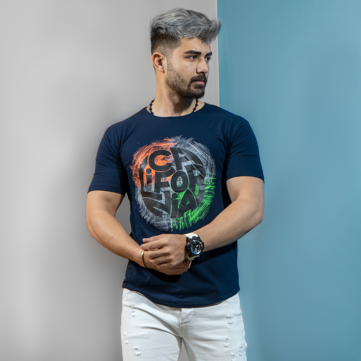 تيشرت مردانه سرمه ای مدل Coda