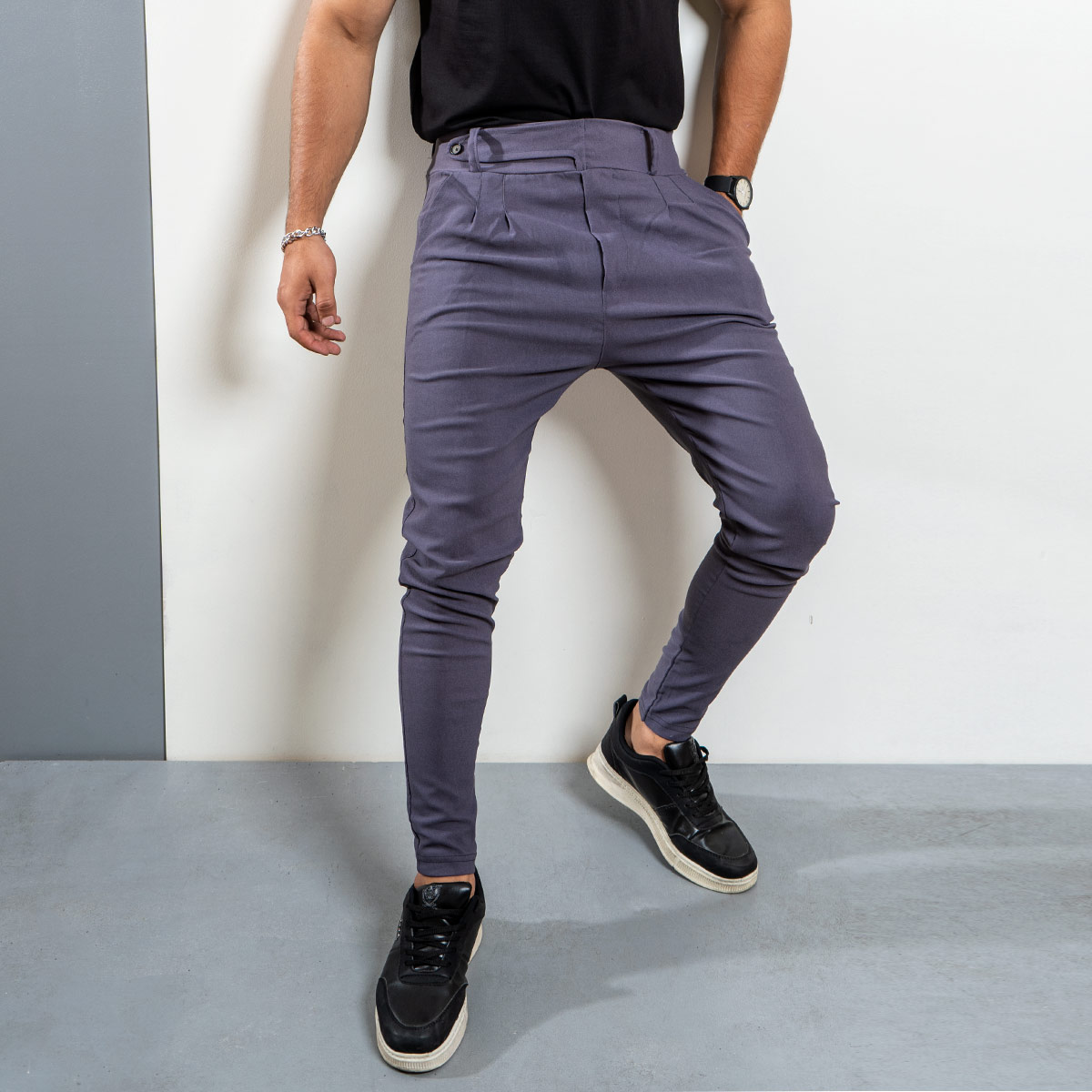 شلوار اسلش كمربندي طوسي مردانه مدل Zaros