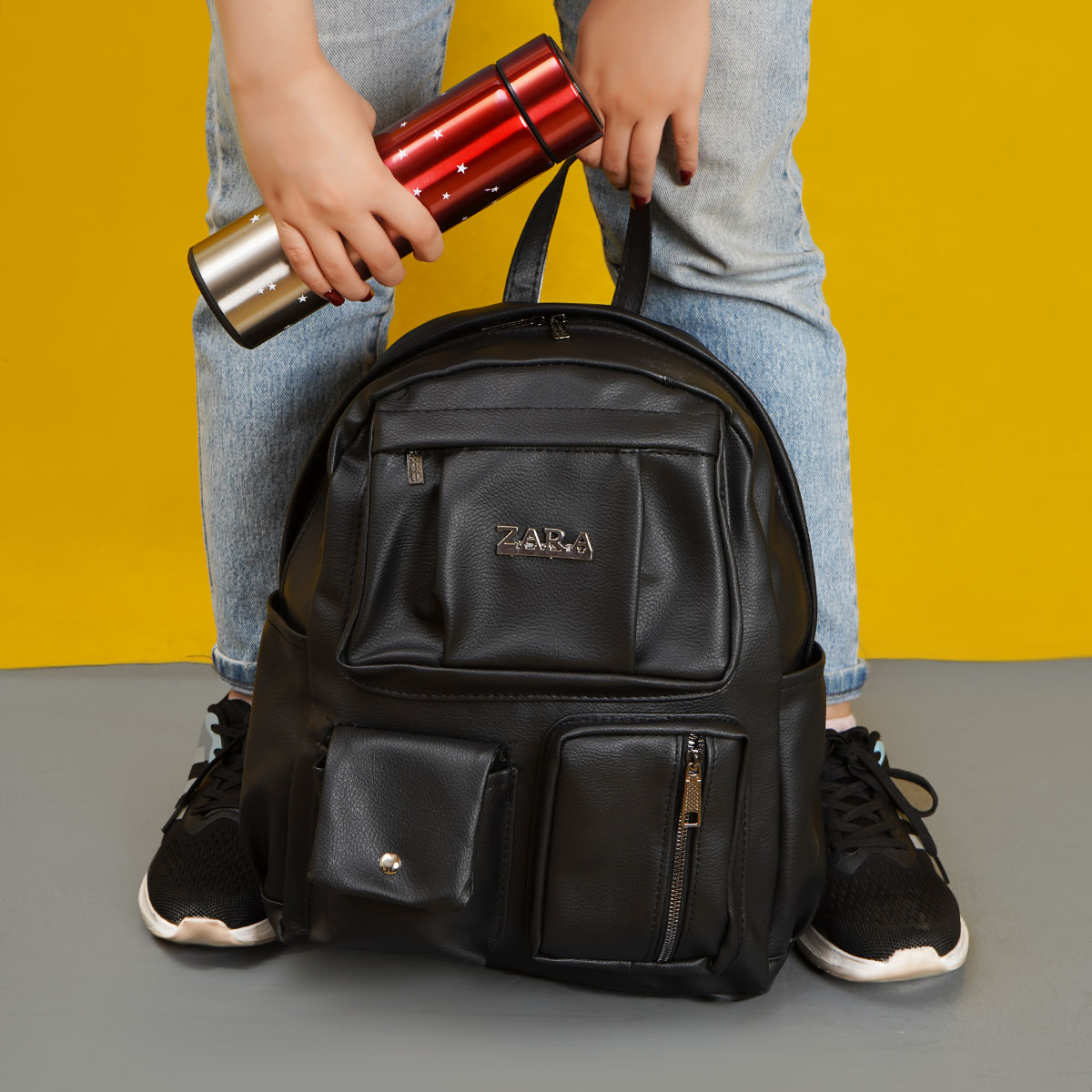 کوله پشتی چرم زنانه مشکی مدل ZARA